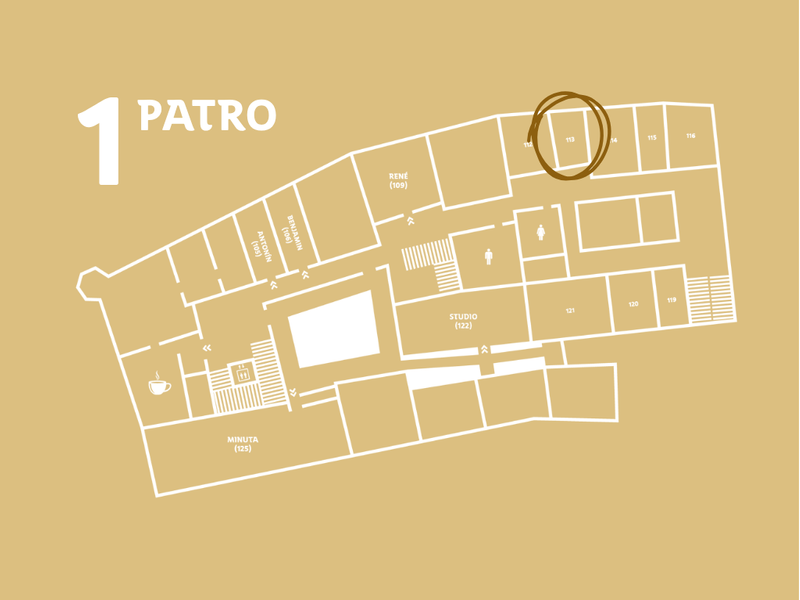 Od května 2026 máme volnou kanceláč č. 113 v zadní části 1. patra o velikosti 11,04 m2.