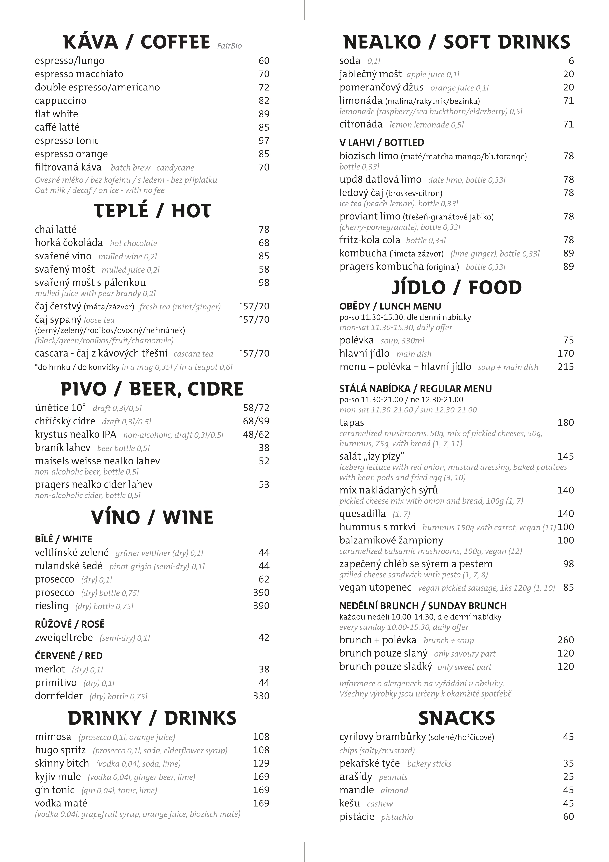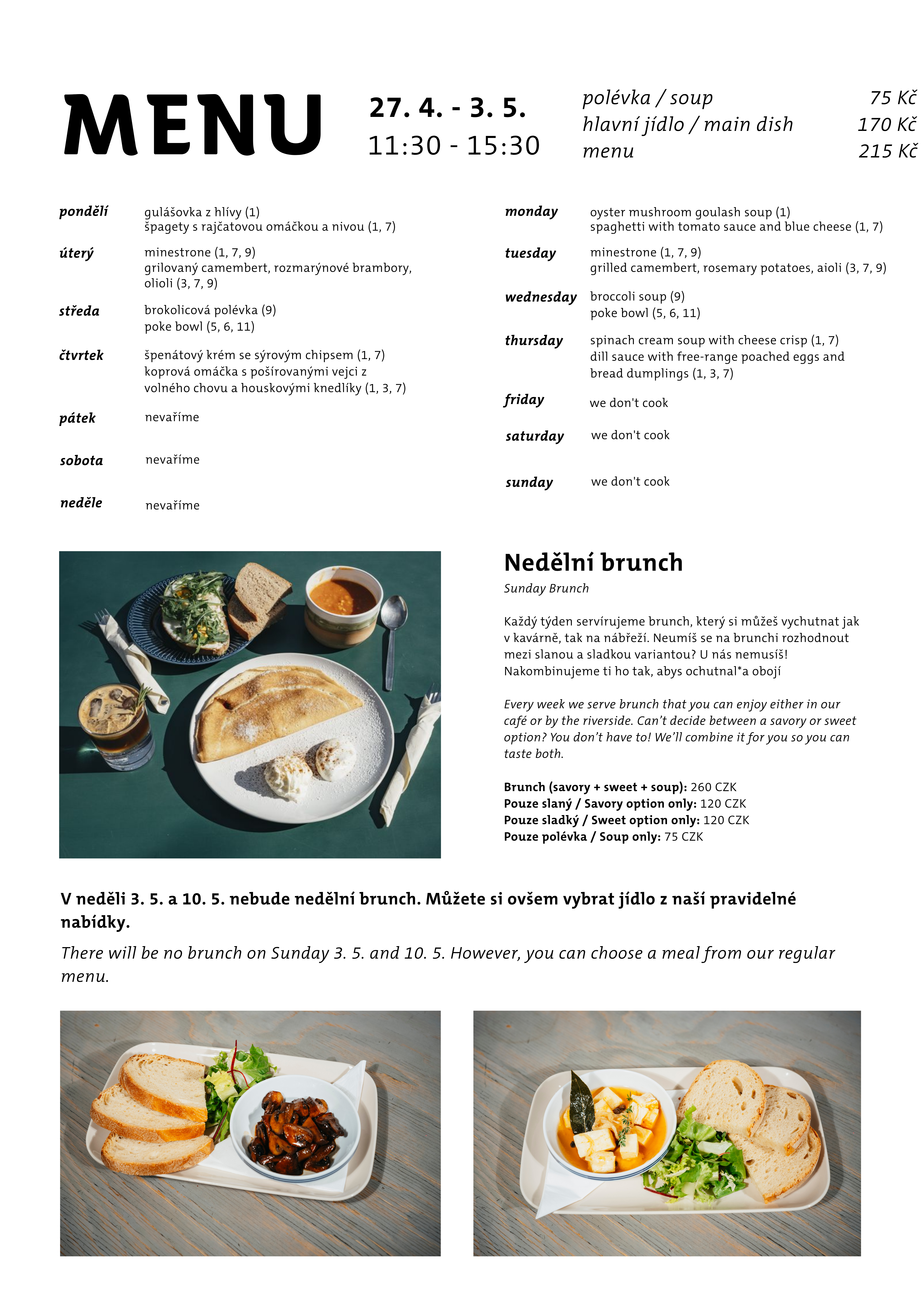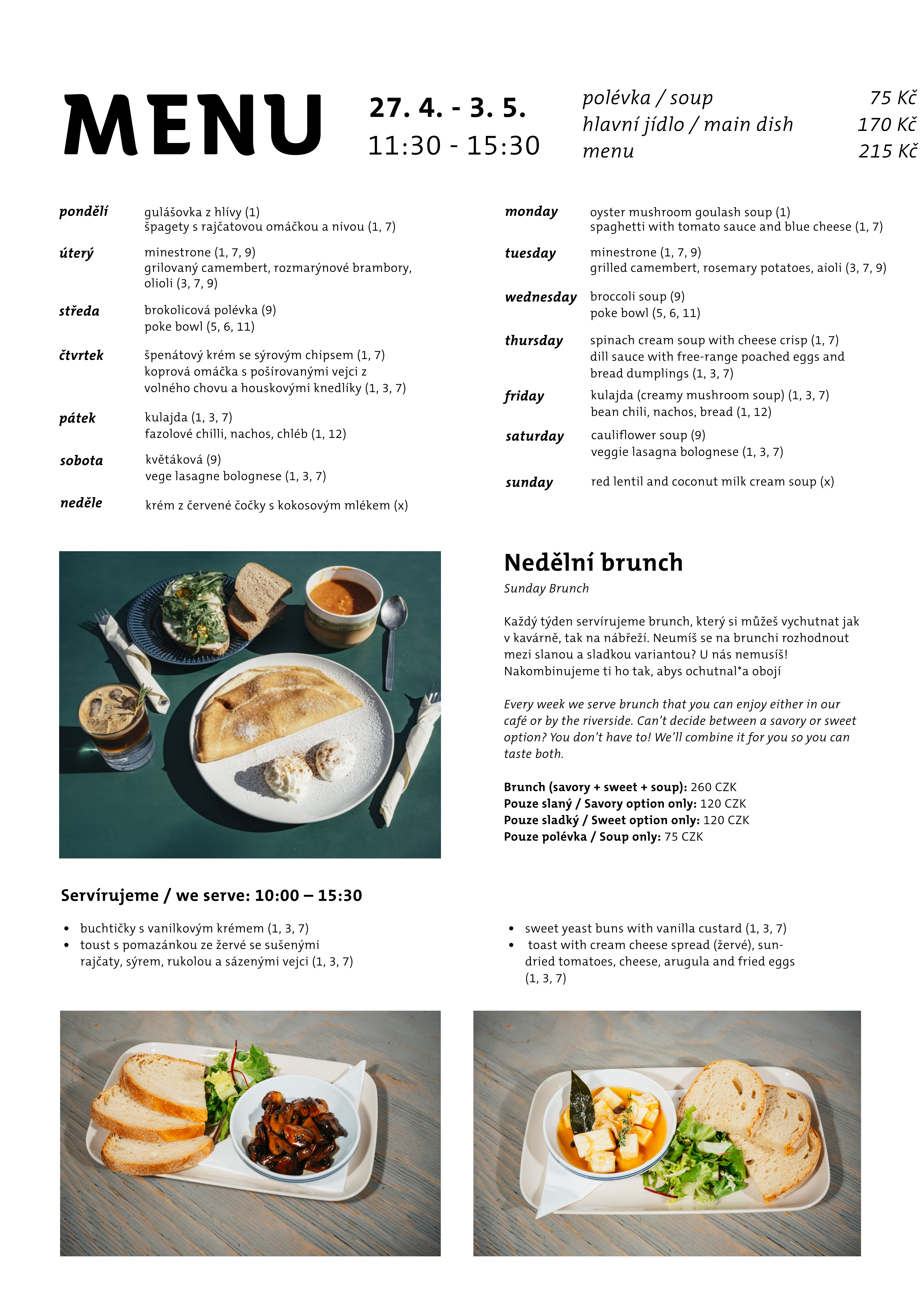 Aby Rybárna mohla být každý den otevřena - a s ní i veřejný program a sdílené dílny - provozujeme v přízemí kavárnu. Vaříme vegetariánsky nebo vegansky a záleží nám na výběru kvalitního sortimentu a spolehlivých dodavatelů. Snažíme se minimalizovat vyprodukovaný odpad, a proto u nás dostanete věci s sebou pouze v zálohovaných kelímcích nebo krabičkách.