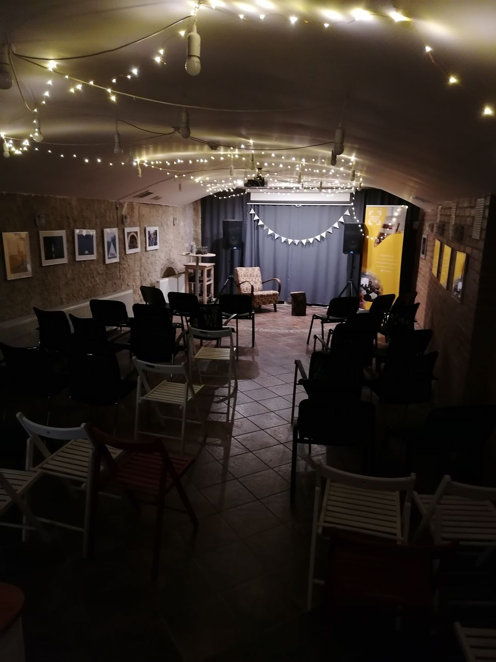 V sále vzhledem k umístění v suterénu nejsou okna.