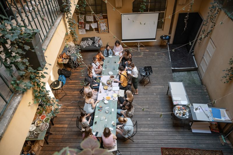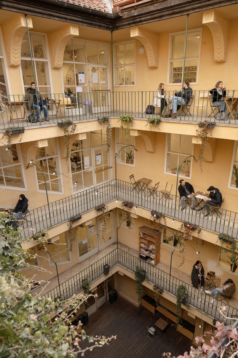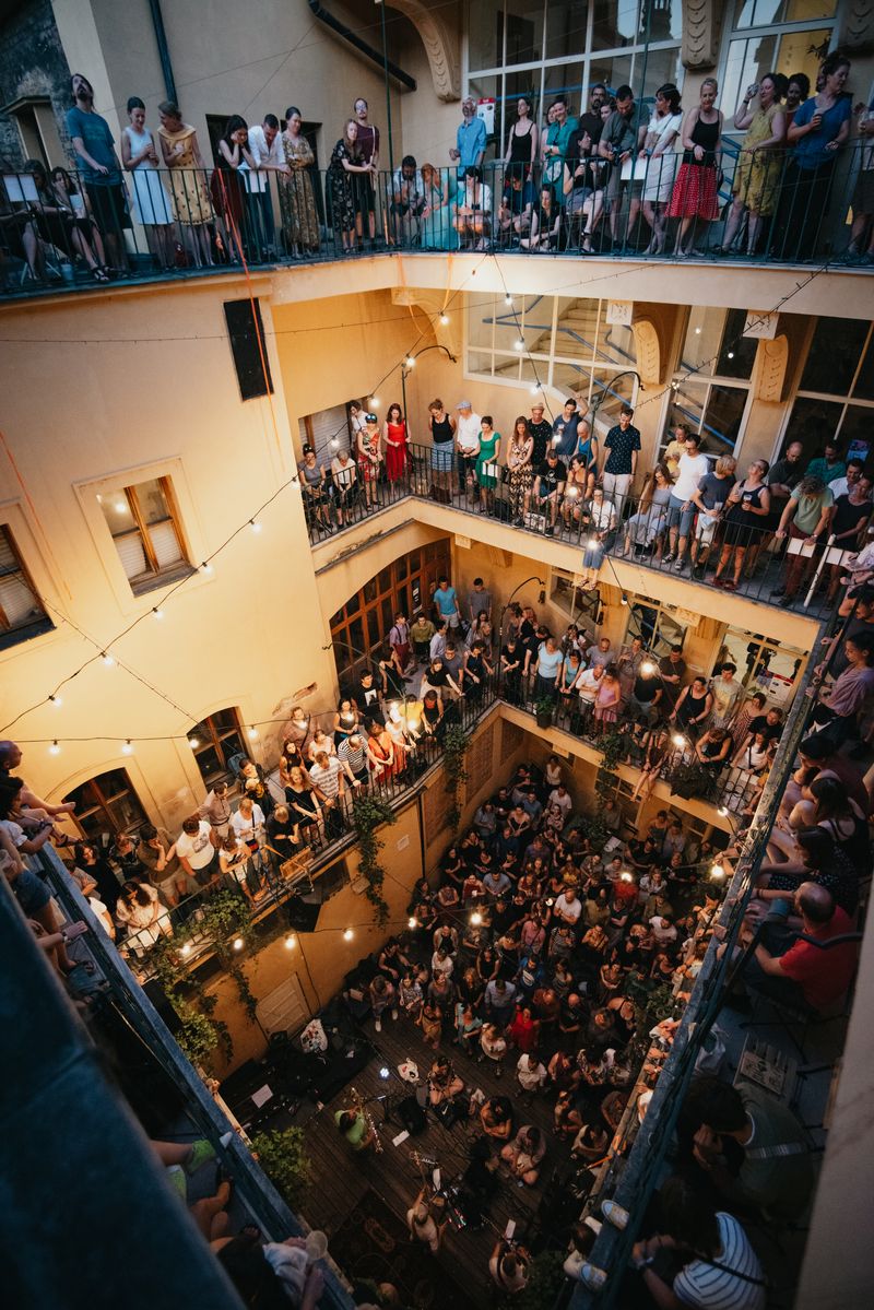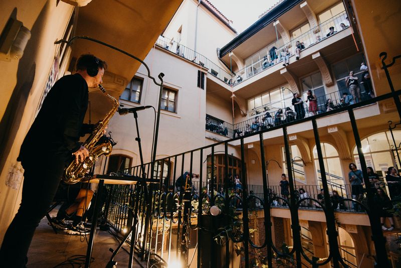 Je možné využít veškeré nekancelářské prostory domu (kavárnu, dvorek, pavlače a 11 rezervačních místností).
